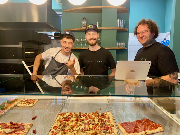 Die eigentliche Überraschung sind aber die Weine, die auch jedem Restaurant gut zu Gesicht stehen würden. Der Spumante Brut „Ombra“ vom Ausnahmewinzer Nicola Gatta aus der Franciacorta-Region zeigt auf ganz individuelle Art Klasse. Feine Perlage, cremige Struktur, Aromen von Äpfeln, Brotkruste und Gebäck. Unfiltriert sowie biodynamisch nach dem Mondkalender erzeugt. Immer eine sichere Bank sind die Champagner von Gimonnet (hier ein Pinot Noir/Chardonnay), die wie ganz selbstverständlich zur Pizza passen. Es stehen aber auch sechs Offerten glasweise parat, die beiden Rosés haben so viel Charakter, dass sie den Sommer und das Essen bereichern: Gris de Grenache von der Domaine de Vigier (saftig und wunderbar trocken) und Rosé von Kampf aus Rheinhessen (auch gut und trocken, aber eher ein Darling für alle). Das kleine Team des neuen Lokals, das weit mehr als eine Pizzeria ist, tritt sehr einsatzfreudig auf, wie man das auch aus anderen guten Lokalen kennt, hier aber vielleicht nicht erwartet. Bravo! Andrei Lipan hat ein gutes Händchen für Weine und Menschen.