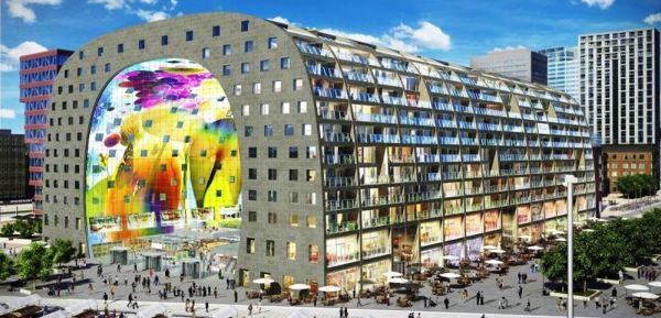 Zu den berühmten Markthallen Europas in Barcelona, Valencia und Madrid gesellt sich ab 1. Oktober die neue „Markthal“ (Markthalle) in Rotterdam. Das spektakuläre Design erinnert an einen riesigen Flugzeughangar. Der imposante bogenförmige Bau liegt zentral am Blaak Platz, welcher bereits vorher als Marktplatz diente. Er fügt sich als  architektonisches Glanzstück perfekt in die Architekturmetropole an der Maas ein, die durch Bauten von Berühmtheiten wie Rem Koolhaas geprägt ist. Die Markthalle in Rotterdam ist der erste komplett überdachte Lebensmittelmarkt der Niederlande.