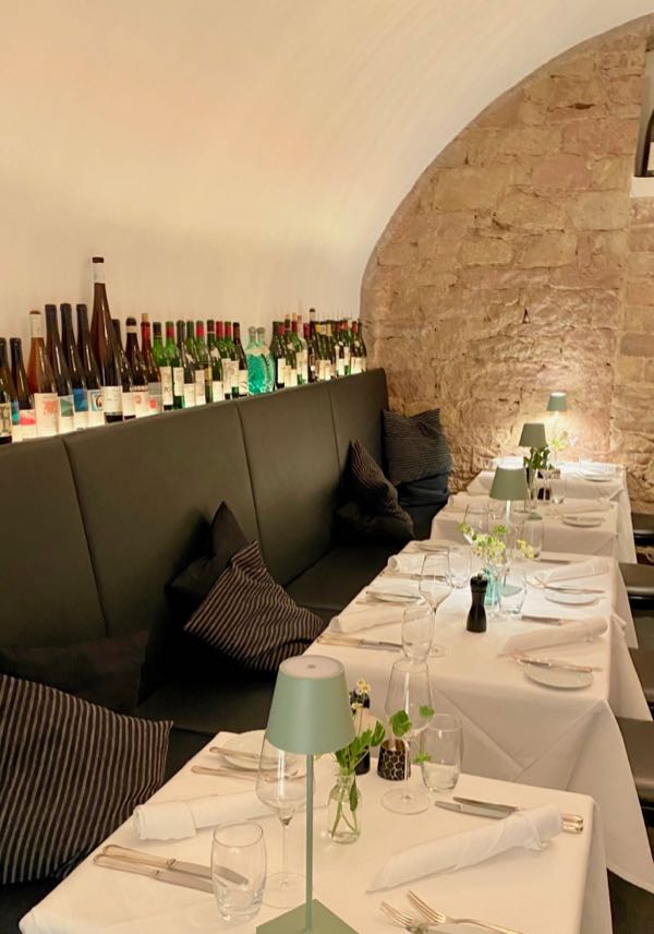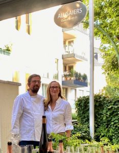 Stefan Allgaier (im Bild oben) ließ die Korken knallen und feierte im exklusiven Kreis die Neueröffnung seines Restaurants, das er gemeinsam mit seiner Lebensgefährtin Marina Witte führt. Sie ist für den Service verantwortlich, während Stefan Allgaier die Küche führt, wobei der langjährige Mitarbeiter Jean Lazare Mburanumwe noch immer an seiner Seite am Herd steht. Das Restaurant war auch schon in den Vorjahren für seine Weinkompetenz bekannt und zeigt dies auch jetzt wieder mit rund 350 Offerten, die wohltemperiert aus den vier Klimaschränken kommen. Europäische Weine stehen klar im Vordergrund, vor allem deutsche und französische. Auch die schäumende Weine wurden ganz nach persönlichen Vorlieben ausgesucht, neben einem sehr guten Sekt vom Gut Hermannsberg von der Nahe sind gleich drei verschiedene und herausragende Champagner von Roger Coulon zu haben, den man hierzulange eher selten findet. Württemberg findet auf den Weinkarten verschwindet gering statt, auch im Allgaiers gibt es nur eine Position, die aber erstklassig ist: der Lemberger von Rainer Schnaitmann.
