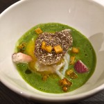 • Sven Elverfeld vom „Aqua“ in Wolfsburg: „Er bietet sanft geschmortes Schweinekinn mit warm mariniertem Kaisergranat mit Krustentiermayonnaise, Koriander, Ingwer und zugleich frischem wie erdigem Saft von fermentierten Karotten als repräsentatives Gericht für sein Bestreben, die stets vorhandene große Komplexität nicht plakativ zu betonen, sondern dem Gast ein Gefühl der Harmonie zu vermitteln.“