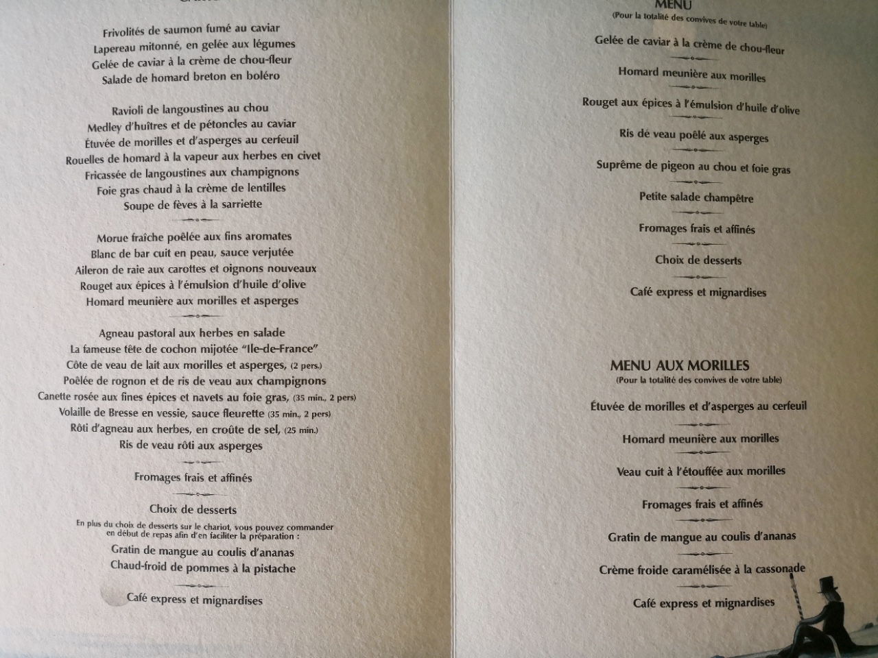 Menü von Robuchon aus den 80er Jahren, als Jörg Zipprick das erste Ma(h)l dort tafelte