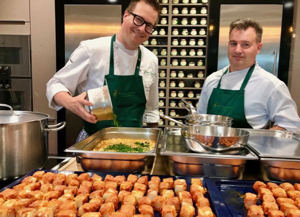 Juan Amador, der in der Nähe im Sailauf bei Aschaffenburg auch einst in den Weyberhöfen kochte, ist mit Ingo in alter Freundschaft verbunden, sonst wäre er auch nicht so leicht aus Wien zu locken gewesen, wo er kürzlich mit drei Michelin-Sternen geadelt wurde, die ihm nicht nur Ruhm, sondern vor allem noch mehr Arbeit bescheren. Juan Amador erinnerte sich noch gut an seinen Besuche in Ingo Hollands Restaurant Zum Alten Rentamt in Klingenberg, wo er seine erste Waldschnepfe und exotische Gewürz-Gerichte aufgetischt bekam.