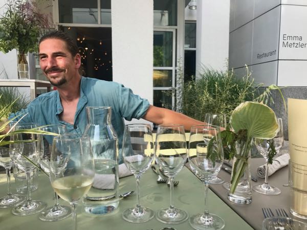 Ein typisches Ingo Holland-Gericht machte auch etwas traurig, weil er ja schon lange nicht mehr in seinem Restaurant steht und solche Delikatessen nur noch bei Gelegenheit serviert: Geräuchertes und mit Gewürznelke und Traubenbalsam lackiertes Schweinebäckchen auf Linsen und Dörrbirne. Auch das aromatische Waldmeistersüppchen mit Himbeer-Kakao-Sorbet wird man so nur noch selten erleben können. Ingo Holland, der im Sommer am liebsten Apfelwein trinkt, vor allem den vom Winzer und Weinhändler Norbert Spielmann aus Wertheim, zollte seinem Faible auch kulinarisch Tribut – der in Riesling kalt geschmorte Handkäse mit Apfelbalsam, geriebenem Boskoop und fermentierten Pfefferkörnern schmeckte einfach famos.