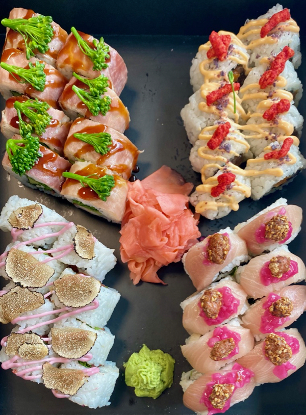 Der hausgebeizte zarte Sashimi-Lachs mit Sauercreme und Fluid von Granatapfel, Rucola und Aprikose ist eine Sommerdelikatesse in Reinkultur. Gleiches gilt für das Risotto mit getrockneten Steinpilzen und „flüssigem“ Salat – einem köstlichen Sud aus Feldsalat- und Gemüsesaft.