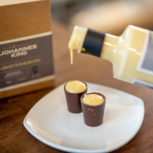 Eierliköre gibt es nicht wenige, der von Johannes King nennt sich Liebelei und ist leider so gut, dass man das Fläschchen schnell wegbekommt. Der Clou ist aber die Sechserpackung mit Mini-Schokobechern, in die man den Eierlikör gießt und das Gesamterlebnis geschmacklich aufwertet. Neu im Programm ist die sahnige Salzkaramell-Sauce mit Rum. Die Kombination aus braunem Zucker, frischer Sahne, Eigelb und Rum Sylter Meersalz hat Suchtpotential und kann pur im Mini-Schokobecher genossen werden oder zu Crêpes, Kuchen und Eis