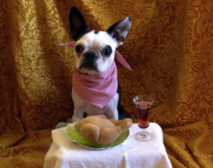 „Wie bitte Gustav? Hör doch mal auf, mit dem Gummifrosch zu quietschen! Dann versteh ich Dich besser.“ In der Scuderia im Westend gibt’s zwar keine Extraportion für die struppigen, chronischen Hungerleider. Aber der Brotkorb mit dem leckeren, selbstgebackenen warmen Brot wird diskret und mit verschmitztem Lächeln immer wieder aufgefüllt, wenn wir ihn zu viert in Nullkommanichts geplündert haben. Wohl wissend bringt man uns zum Espresso auch immer noch eine zweite Portion der himmlischen, selbstgebackenen Cantuccini , die wir nicht mehr ganz so gerecht mit den Hunden teilen – Entschuldigung, Knut, die sind einfach zu lecker.