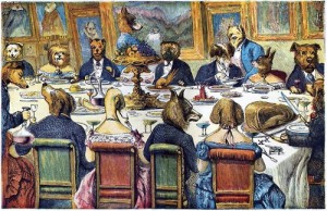 Ja, wir sind ein kinderloses Ehepaar mit zwei Hunden, Gustav und Knut. Nein, die Hunde sind kein Kindersatz. Oder haben sie schon mal einen Hund „Danke, Mama, ich hab Dich so lieb“ sagen hören? Und genau das tun Kinder doch ständig. Unsere Hunde sind verstädterte, vollwertige Familienmitglieder und als solche an möglichst allen Unternehmungen zu beteiligen. Natürlich lassen wir sie zu Hause, wenn wir in die Oper, ins Museum, ins Kino oder ins Theater gehen. Sie sind auch längst nicht so kulturbeflissen wie wir. Aber ein Restaurantbesuch ohne Gustav und Knut? Nur in Notfällen und dann auch noch mit schlechtem Gewissen. Wir berauben sie doch damit ihrer größten Erfolgserlebnisse. Welch ein Triumph, wenn es Knut unter Aufbietung all seiner hypnotischen Kräfte gelingt, uns dazu zu bewegen, nahezu willenlos ein Stück Brot, Fleisch oder Käse unter dem Tisch in seine Schnauze zu schmuggeln und ein zweites für Gustav, der immer nur wach wird, wenn sein Vorarbeiter schon schmatzt.