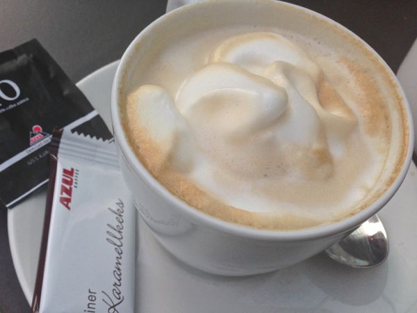 Die neue Foccaceria bietet nicht nur leckere Flammkuchen und gute belegte Fladenbrote, sondern auch Cappuccino an. Einen besonders guten auch noch, mit feinem Aroma und standfestem Schaum. Die Basis dafür kommt von der kleinen privaten Edelrösterei Schmidt aus Dreieich bei Frankfurt. Der Service im klitzekleinen Koobasi ist besonders nett und kennt sich gut aus. Cappuccino 2,80 €, nackt.